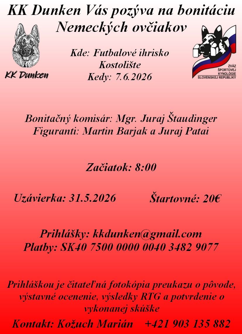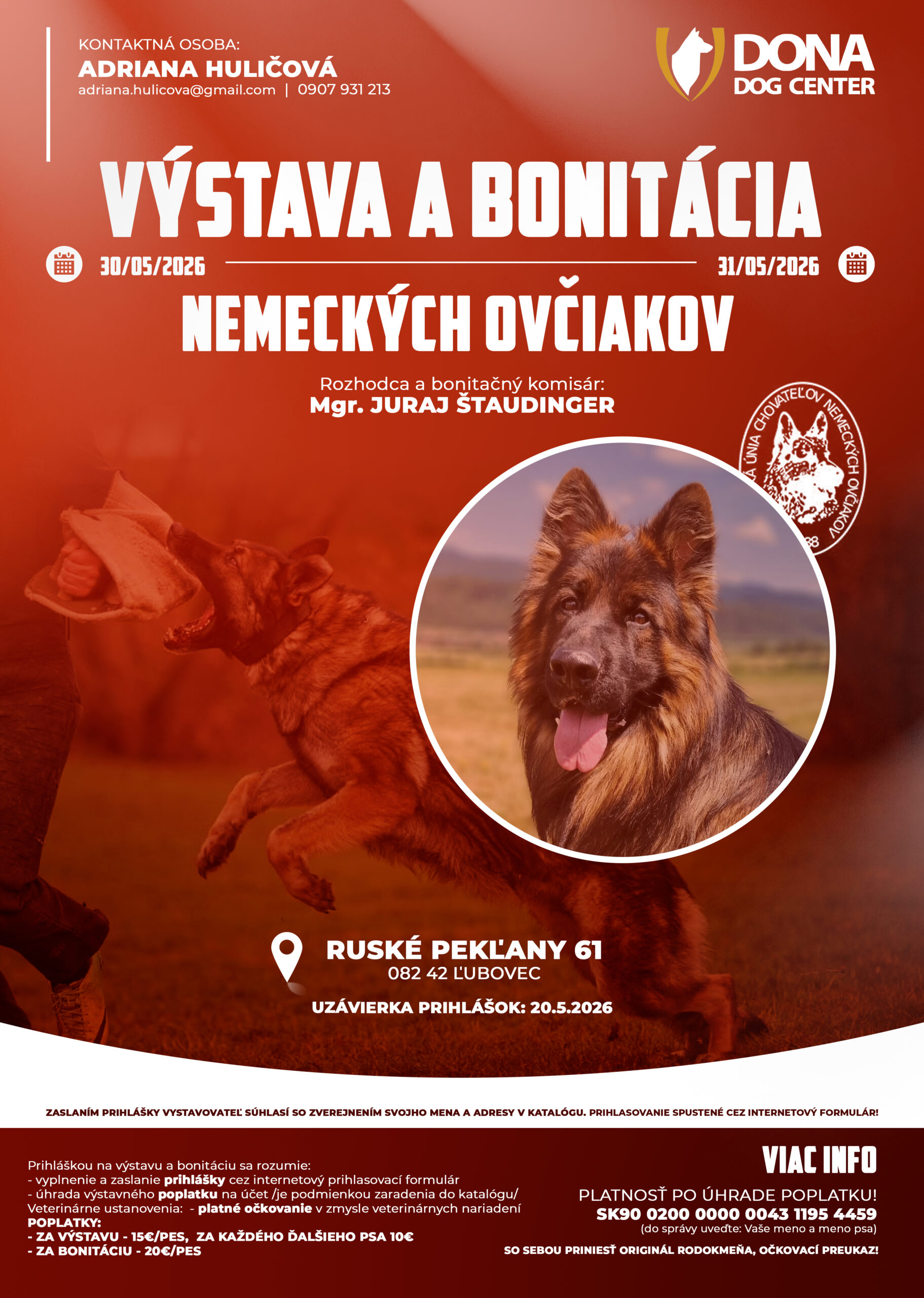 Dňa: 9.5.2026 Prezentácia: 7.00 – 8.00 hod. Miesto konania: štadión TJ VLM Pliešovce Bonitačný komisár: Mgr. Ivan Kočajda Figurant: Vladimír Tomka Poplatok: 20 € za psa, v cene guľáš Uzávierka čítajte viac